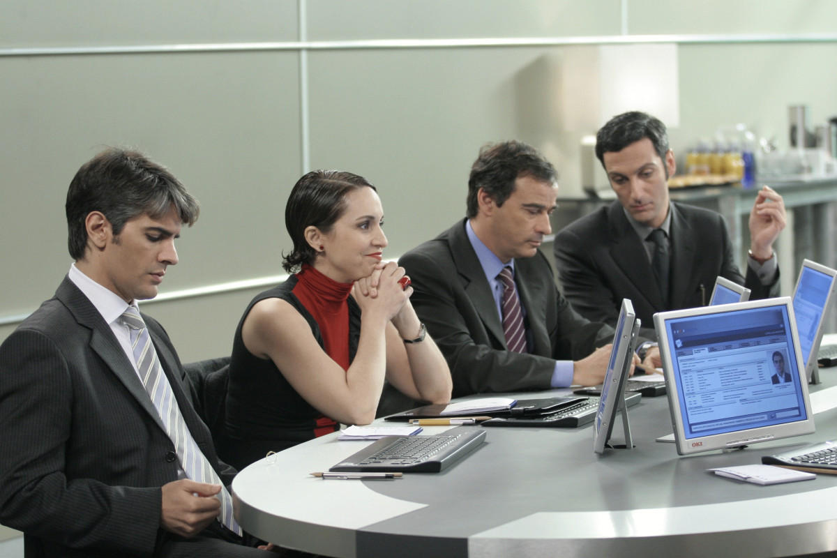 Madrid. Thousands of people are demonstrating at a protest rally against the International Monetary Fund. Amidst this tense atmosphere, interviews are being held in the skyscraper of a supranational financial corporation for a high managerial position. Seven candidates are going through the selection process which involves the application of the so-called Gronholm method of elimination, based on psychological tests, which German army officers had to go through after the 1st World War. Now the method has been adopted by big business. After conquering a senseless bureaucratic labyrinth, the candidates must then undergo a test whose principle is founded on a cunning drama of mutual suspicion, character-bashing, the forming of alliances, humiliating manipulation, and buck-passing, with the comforting reassurance that “no-one is forcing you to do this”. Some of the candidates would rather be outside in the street with the demonstrators, but haven’t the nerve to admit it.